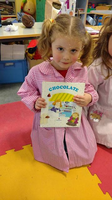 Hoy hemos leído éste cuento y gracias a él, hemos podido ver todo el proceso que sigue el cacao desde que lo recogen del árbol, hasta que llega a nuestras casas convertido en bombones, pasteles,chocolatinas....
