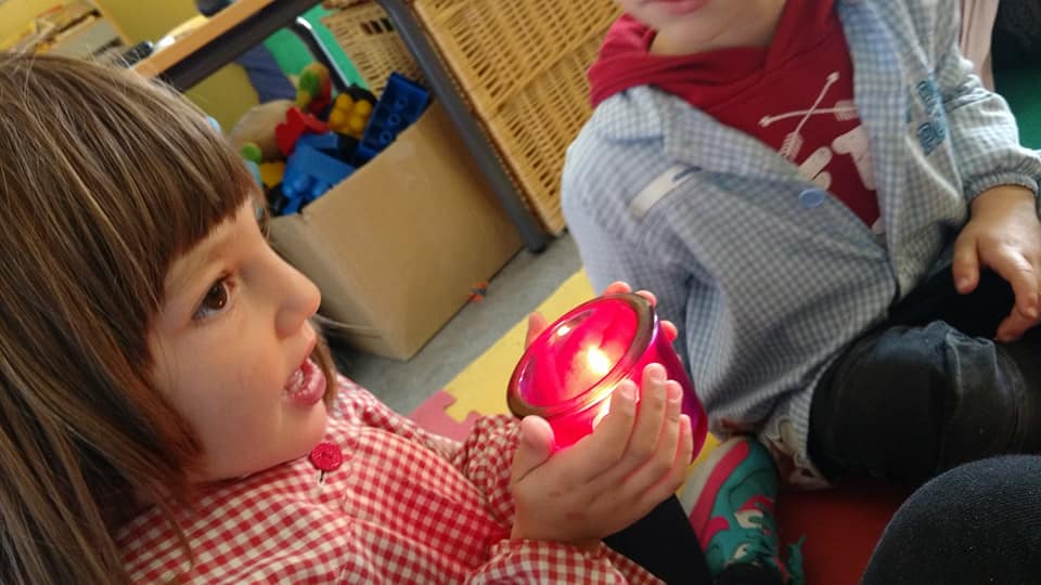A continuación, hemos hecho una ronda con la vela del recipiente más alto. La hemos cogido con las dos manos, con mucho cuidado, hemos observado la vela unos segundos, mientras respirábamos suavemente. Teníamos que respirar muy conscientes, porque sino se puede apagar la vela.